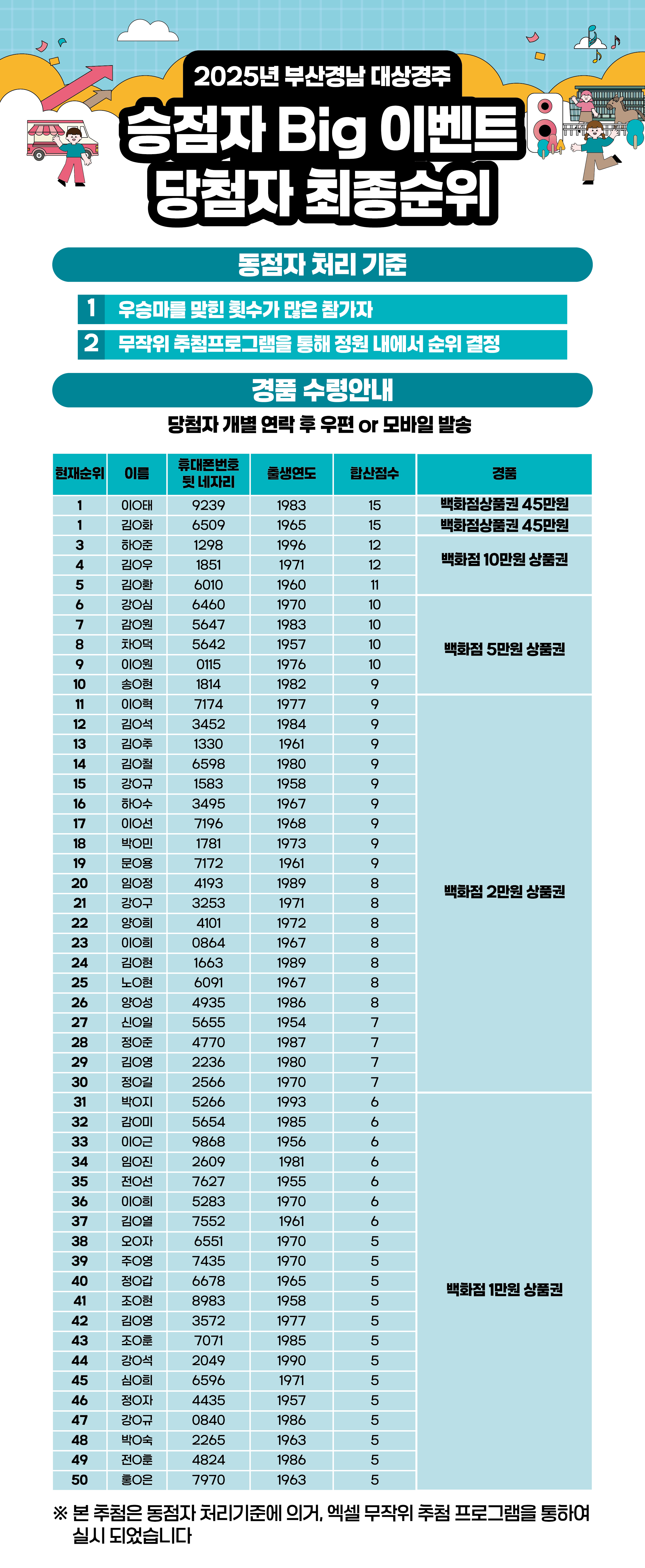 2025년 부산경남 대상경주 '승점제 BIG이벤트'에 참여해주신 모든 분들께 감사드립니다.